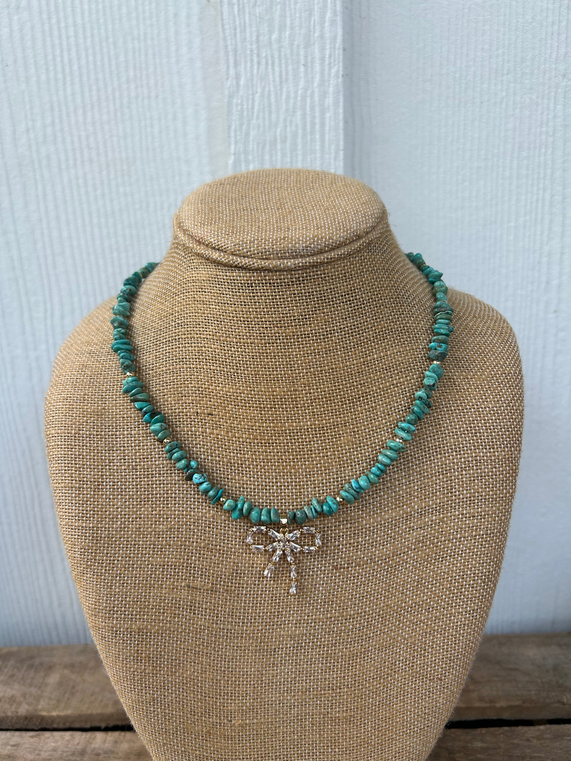 Turquoise and gold bow